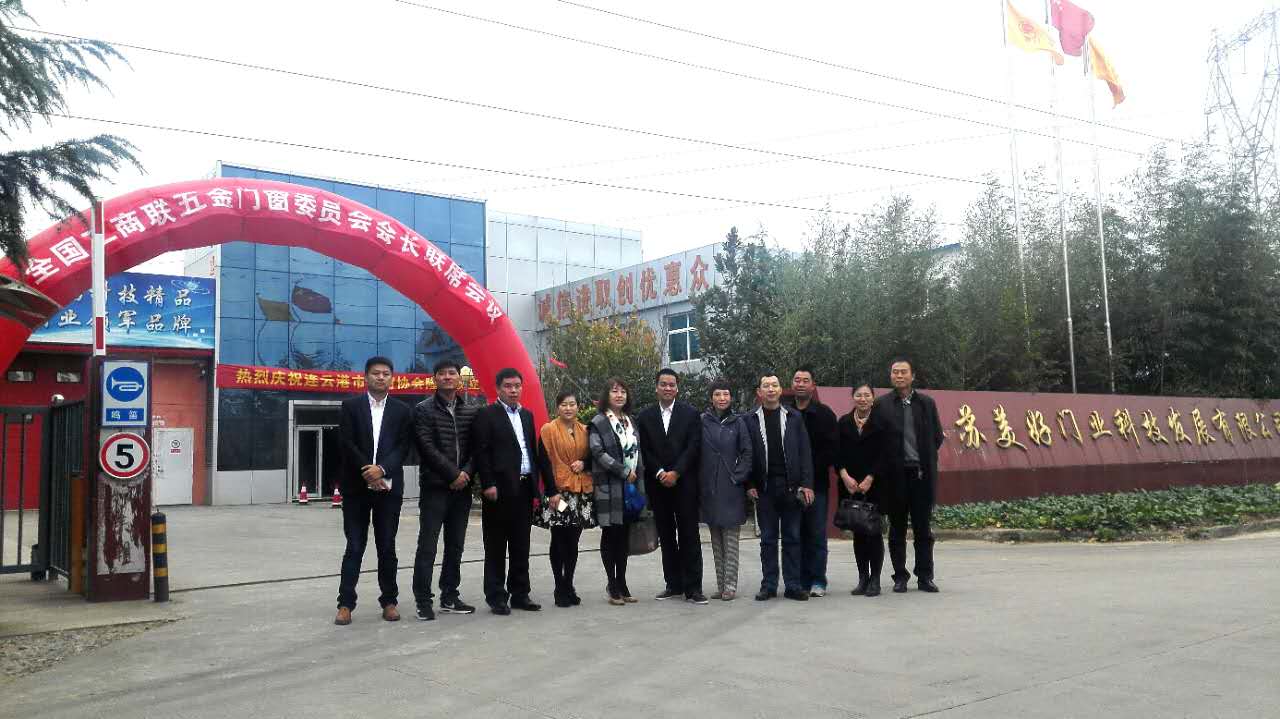 參會人員在江蘇美好門業科技發展有限公司門前合影留念
