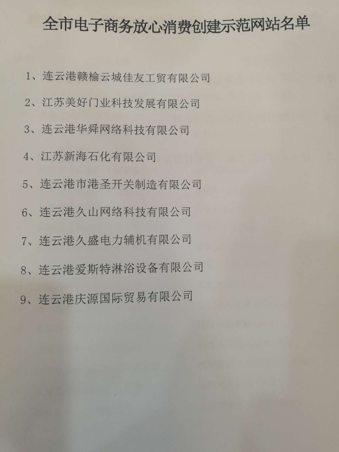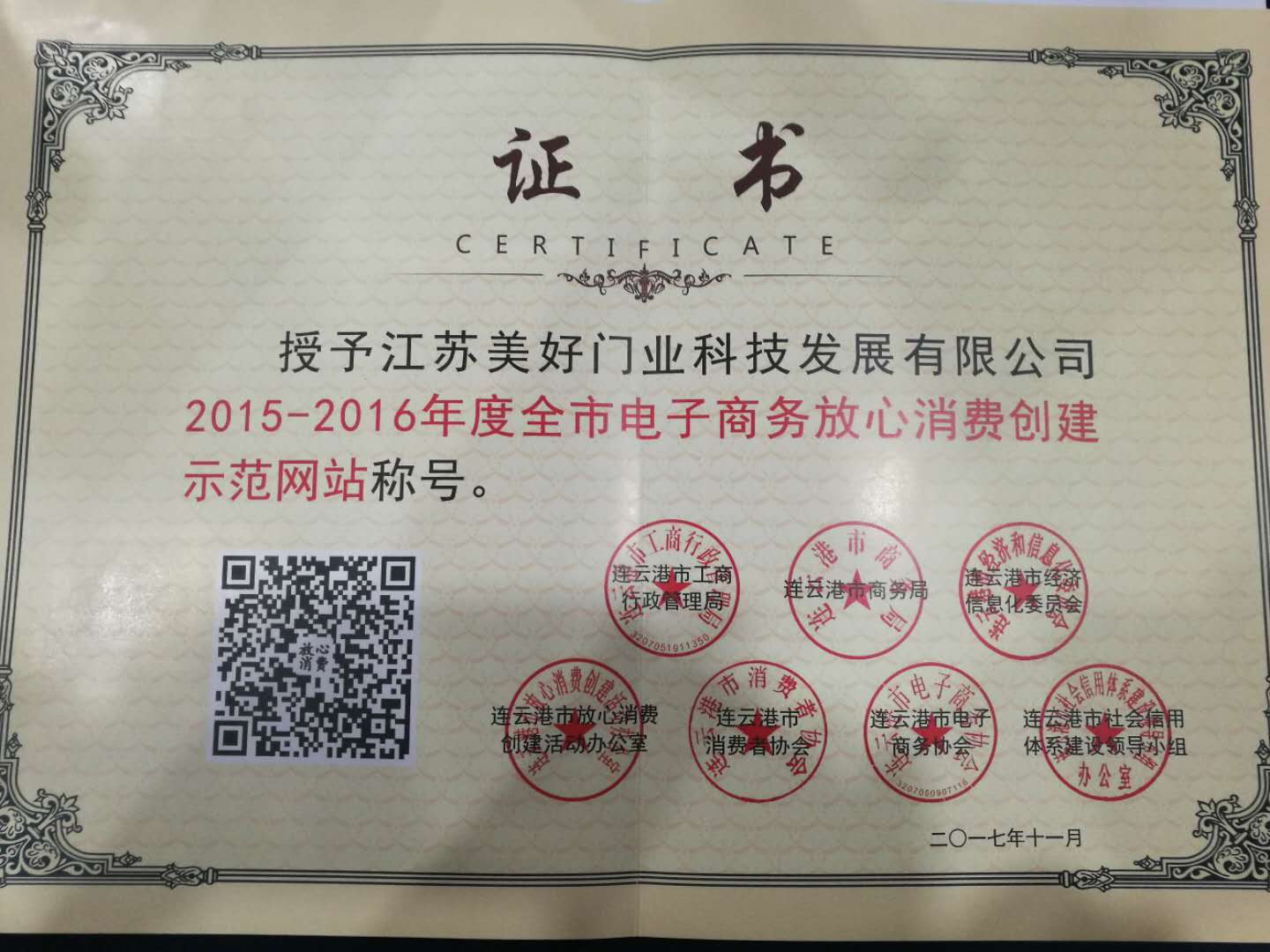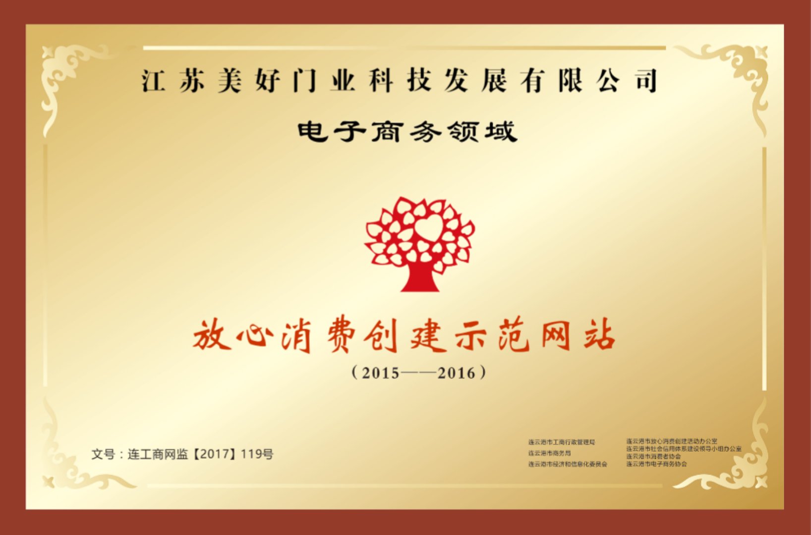 江蘇美好門業科技發展有限公司榮獲“全市電子商務放心消費創建示范網站”