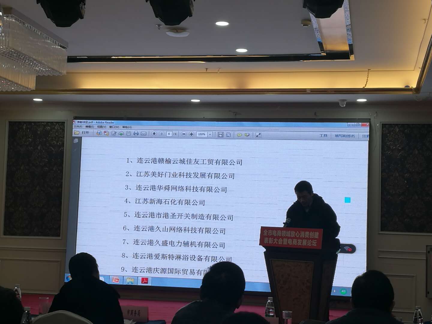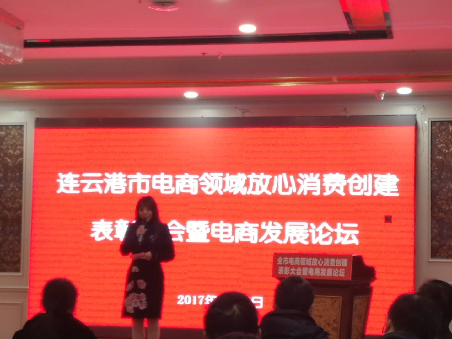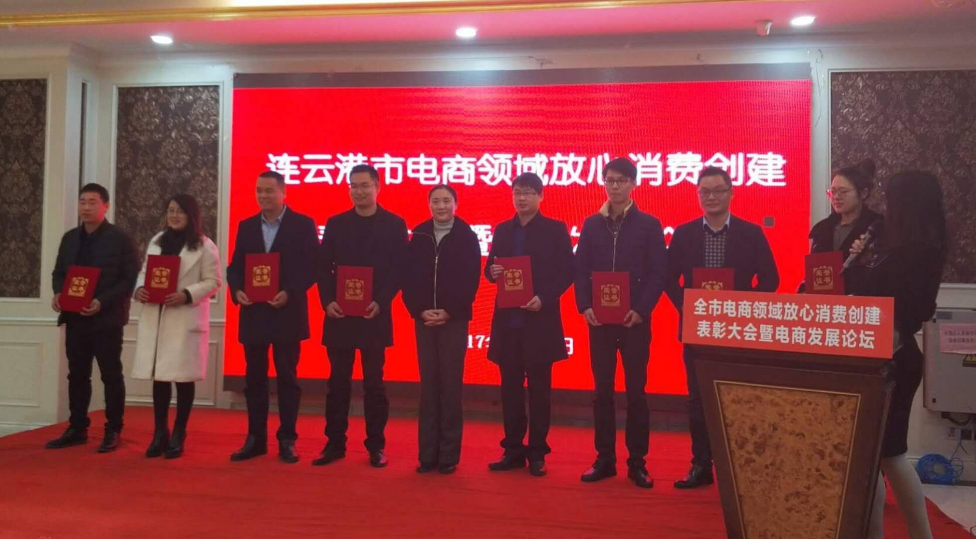 江蘇美好門業科技發展有限公司董事長潘國柱,參加“全市電子商務放心消費創建示范網站”表彰大會。