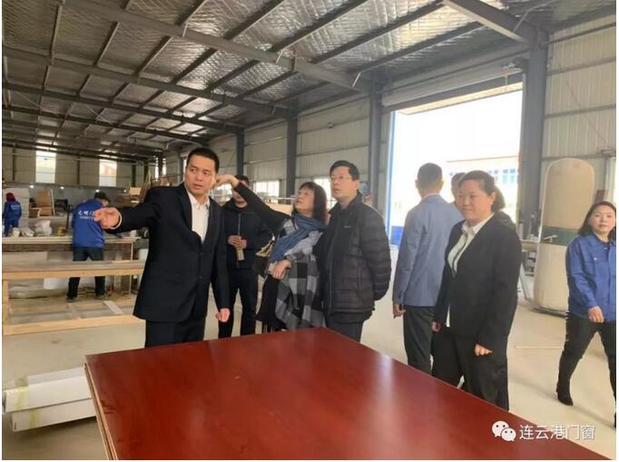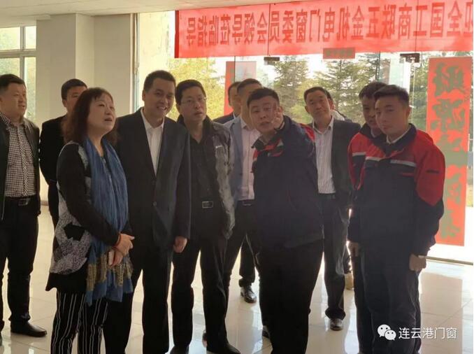 江蘇美好門業科技發展有限公司董事長、連云港市門窗協會會長潘國柱陪同全國工商聯五金機電商會領導走訪會員企業