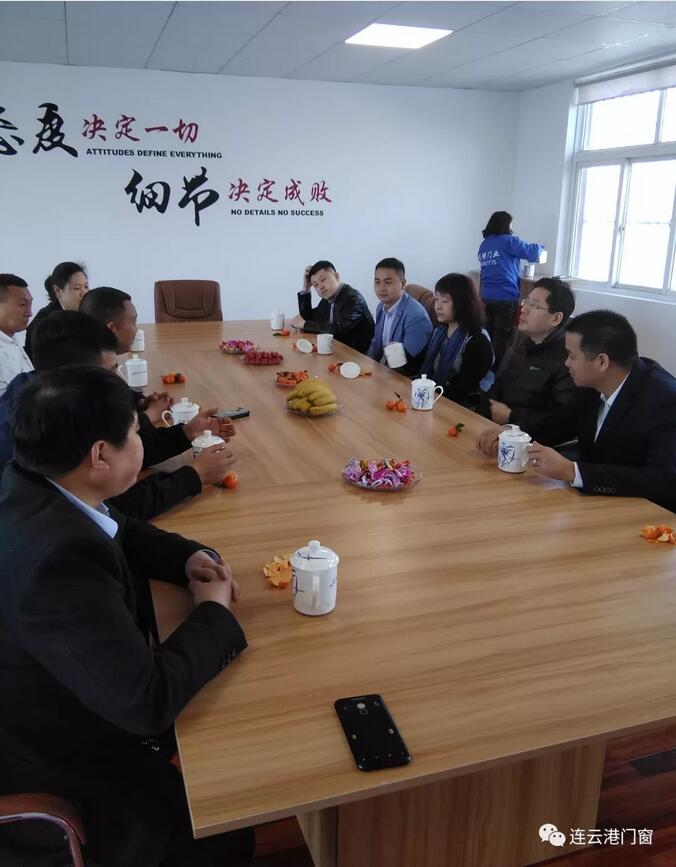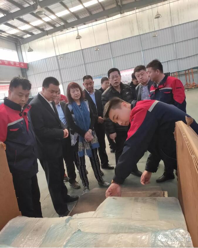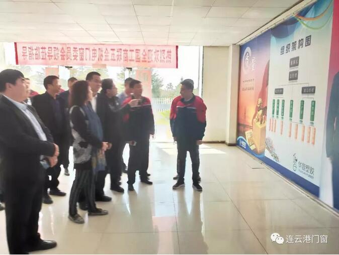 3月17日,全國工商聯五金機電商會產業發展部主任、建筑門窗委員會秘書長張秀梅女士,全國工商聯五金機電商會產業發展部副主任、建筑門窗委員會規劃建設部主任顧衛東先生,全聯五金機電商會建筑門窗委員會聯絡部主任王波先生和國家建筑材料工業五金產品檢測中心副主任王永帥先生一行,在連云港市門窗協會會長潘國柱、副會長姚連斌、秘書長胡啟楷、執行秘書長唐春和、副秘書長莊東生等協會領導的陪同下,先后走訪了副會長單位:連云港光明門業有限公司和連云港華萱塑膠制品有限公司。