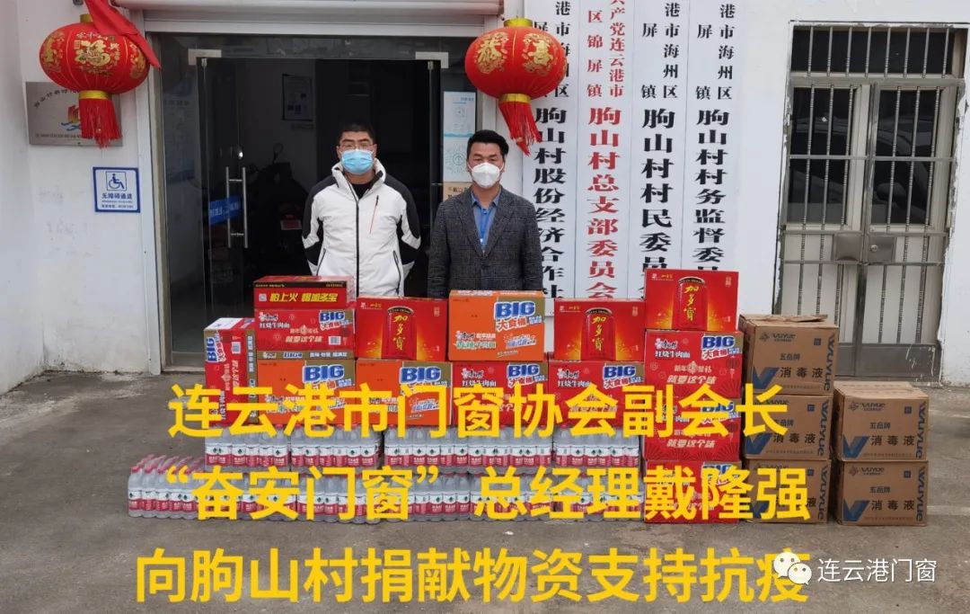 ? ? ? 連云港市門(mén)窗協(xié)會(huì)副會(huì)長(zhǎng)(奮安門(mén)窗總經(jīng)理)戴隆強(qiáng)為錦屏鎮(zhèn)朐山村捐獻(xiàn)物資3000元,同時(shí)還在河西社區(qū)做自愿者參與抗疫工作。