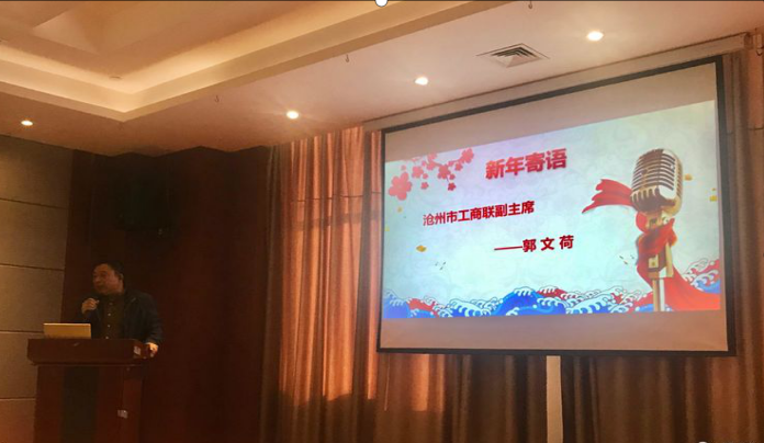 河北滄州市工商聯副主席郭文荷向與會人員致新年寄語。